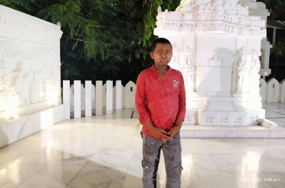 A boy is on the street outside a temple in Delhi, literally begging for his life.